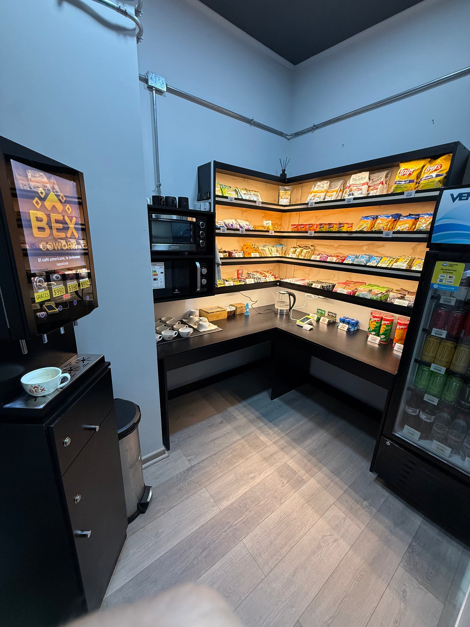 Tenemos disponible café americano gratis, microondas, horno, energéticas y más.